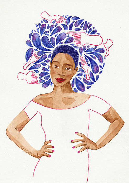 “ Racine “ J’ai voulu parler de l’injonction au défrisage des cheveux crépus. Un système sous lequel le racisme impose des critères inatteignables et exclusifs sur les femmes noires. Merci à mon amie Samya qui m’a « inspiré » avec son joli minois pour ce portrait.